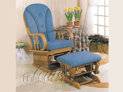 Oak Finish Blue Glider w/Ottoman Set #AC 012264 Features